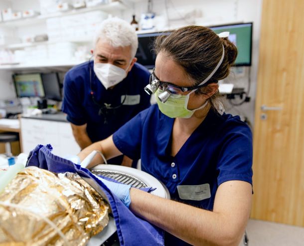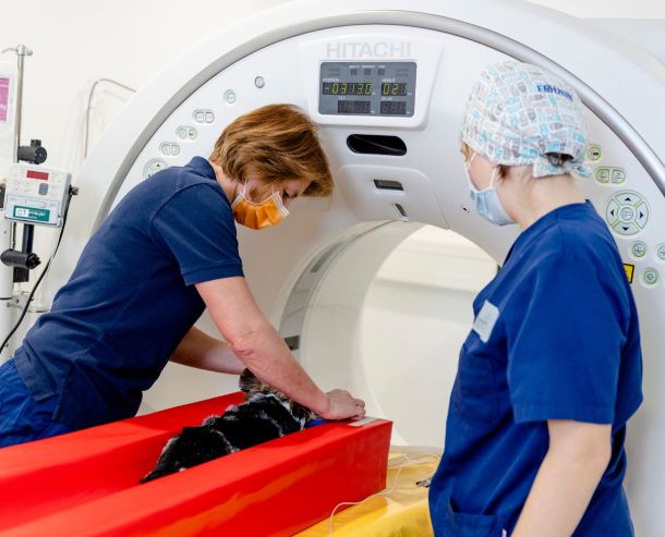 Unser Team mit mehr als 50 Tierärzten, davon 19 Fachtierärzte und Diplomates (Europäische Spezialisten der Tiermedizin) mit besonderer fachlicher Qualifikation in der Kleintiermedizin, verfügt über langjährige und breit gefächerte Erfahrung. Unter uns befinden sich Spezialisten unterschiedlicher Fachbereiche und -gebiete, wodurch wir stets schnell eine sichere Diagnose erstellen und auch für außergewöhnliche Fälle die bestmögliche Therapie finden. Neben der Behandlung von Notfällen decken wir das gesamte Behandlungsspektrum für Kleintiere ab (Vögel und Reptilien können bei uns leider nicht behandelt werden). Darunter fallen die Innere Medizin, Chirurgie, Zahnheilkunde, Augenheilkunde, Neurologie, Gynäkologie, sowie die allgemeine Gesundheitsprophylaxe. Aufgrund unserer technischen Ausstattung mit einem CT und einem MRT bieten wir bildgebende Diagnostik auf dem aktuellen Stand der Technik.
